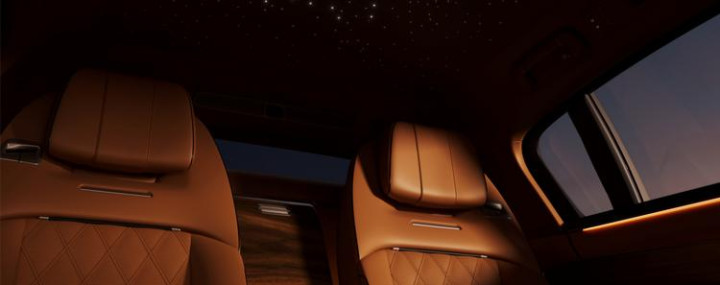 回顾下外观,尊界S800采用了全新的“纵横星瀚”设计语言,前脸设计方正饱满,配备封闭式前脸、居中的发光车标以及“C”形大灯组,灯组内部融入“璀璨星河”灯光效果,极具辨识度。车身侧面线条修长,采用溜背造型,搭配21英寸“大饼”抛光轮毂和镀铬饰条,展现出优雅与豪华。车尾部分,尊界S800配备了贯穿式尾灯,内部采用银河星空效果的点阵光源,中央带有“MAEXTRO”英文标识,进一步提升了车辆的科技感和豪华感。车身尺寸方面,新车长宽高分别为5480mm×2000mm×1536mm,轴距达到3370mm。